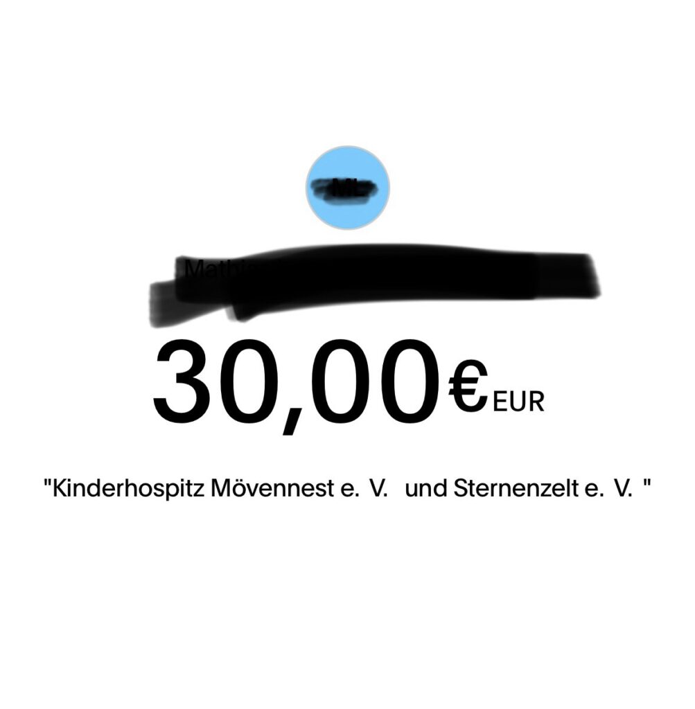 Mit einer nachtäglichen Spende sind es 450€ geworden für das Möwennest e.V. und Sternenzelt e.V. Oberhausen 🙏🥳